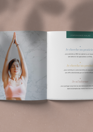 ​Présentation du leaflet réalisé pour Kalae, visant à illustrer leur offre au près du grand public. Ce document stratégique est destiné à être partagé et déposé chez des professionnels de santé afin que leur clientèle puissent faire connaissance avec Kalae.